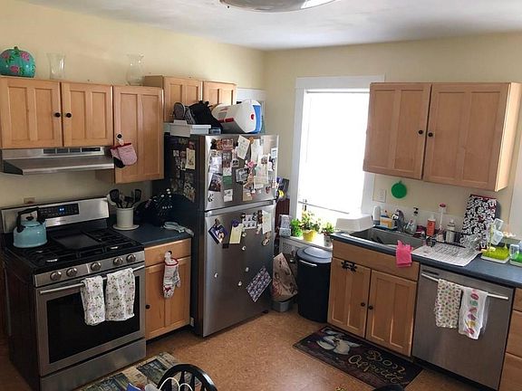 Spacious first floor 2-bedroom apartment in East Arlington. Convenient to Cambridge, Boston, and surrounding areas. Short walk to Alewife, bike path, Mass Ave. The large entry way leads into an inviting and comfortable living space with hardwood floors. The dining room offers a built-in hutch. The eat in kitchen with pantry has been renovated and includes stainless-steel refrigerator, stove, dishwasher, and cork floors. There is a private washer and dryer conveniently located on-site in the basement, and designated storage space in the basement. And there's more... a delightful enclosed back porch and off-street non-tandem parking for two cars, including one garage space. Gas steam heat, insulated walls, replacement windows. Small pets are welcome subject to pre-approval. Available 10/1. First, last, security and brokers.