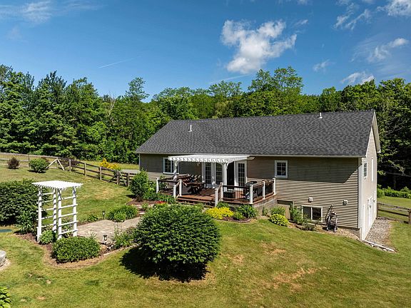 So close, yet so far from the hustle and bustle. Enjoy a quiet, country lifestyle of peace and tranquility in rural southern Vermont. 10 Mins to I-91 and Brattleboro, with its arts and entertainment venues, farmer's market and farm-to-table dining experiences. Enjoy the open concept of this light-filled home. Enter the foyer from the front porch or your direct-access garage into the mudroom with a half bath. The kitchen is designed for efficiency with a built-in pantry, plenty of cabinets and a granite countertop with a breakfast bar. The large dining area allows for alternate seating patterns, that can be combined with the living room for an array of options for furnishings. The primary suite consists of a vaulted ceiling and arched window to let the moonlight lull you to sleep, two large closets and a full bath with a double vanity, soaking tub, glass shower and laundry area. A second bedroom completes the main level. There is a second living area on the lower level, a large office, bedroom and full bath plus the utility room and a storage room. There are French doors that open to the spacious side and front yard. Showings delayed until Saturday June 15, 2024.