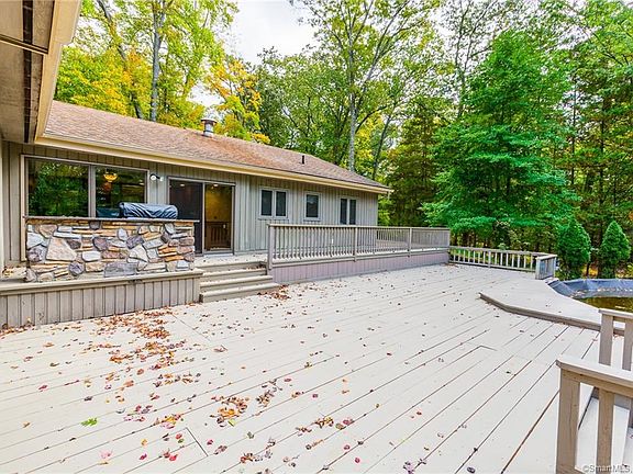 Spectacular three bed, two & a half bath California style contemporary ranch located in quaint Middle Haddam, just a stone's throw from the CT River with water views. Enjoy the open floor plan as well as the ambient light that flows through this single level home! The modern design is uniquely centered around a full glass center atrium with Koi pond that abuts to the gourmet kitchen with granite counters, cherry cabinets, large island that seats seven, full glass & slider that peers out & opens to the expansive two level deck & CT River beyond. It also abuts to the open/contemporary dining room & living room on the other adjacent sides. The sunken family room offers a gas burning fireplace, vaulted ceilings & deck access on one side of the atrium with the sunken living room with vaulted ceiling on the other. The sleeping quarter with master on-suite & two additional bedrooms & additional full bath is perfectly located opposite the kitchen beyond the atrium. The large laundry room, mudroom with garage access & half bath are located on the opposite side of the kitchen. Other features include an attached two bay garage, main level wine closet with dry bar, circular driveway, large two level deck with built-in outdoor propane grill, pool access, central air, propane fired on-demand hot water, a storage shed, additional Koi pond with a running brook & of course scenic river views! Designed for entertainment both inside & out, it's truly a must see!