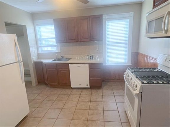 Here is a beautiful, sunny five room apartment on the top floor of a three family home 5 min walk to Porter and 12 min to Harvard. Gleaming floors, all modern windows with nice blinds, living room + dining room, eat in kitchen, huge coat closet, and large back porch make for excellent common space - there are also folding doors between the living and dining rooms if you want to use one as an office. The two good sized bedrooms both have walk in closets. The kitchen and bath are not luxury renovations, but both have been recently updated and there a dishwasher + built in microwave in the kitchen. The huge pantry has lots of shelf storage + side by side washer-dryer. There are three remote control ceiling fans with lights. Immaculately kept by owner occupant who lives below - so throw rugs are required in the main common rooms and bedrooms for noise reduction. No pets. No loud music or loud parties. (Reference #122123)