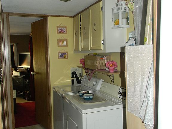 Mobile home with updated carpet, flooring, sink. Open concept kitchen and living room. Located in mobile home park. Includes washer, dryer, dishwasher, stove and refrigerator. Stove and Refrigerator in house currently not included, but appliances will be included. Attached deck with a patio on the back of the house. Nice landscaping. Neighborhood Description It's on a corner lot, bigger yard than others in the park. Landscaping done. Friendly neighbors. New sidewalk and roads.