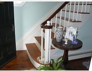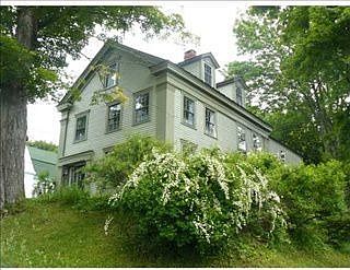 Short walk to harbor and shops. 1820 colonial w large rooms, high ceilings. Excellent condition. Pine floors. Artful kitchen: white marble counters; Wolf cooktop. Third floor studio. Small first floor bedroom. Metal roof. Garage with shop.