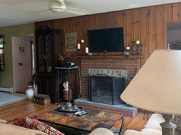 This spacious Cape with curb appeal is a must see! Set on a corner lot on a picturesque street it has great flow, tasteful updates, hardwood floors, sleek counters, bath skylight, and charm! Main floor features open and modern eat in kitchen, large living room with dbl sided fireplace into formal dining room w/ sliders to an inviting back patio, two main floor bedrooms, 3 season encl porch and full, updated hall bath. Upstairs holds a large master bedroom, bedroom and new, full hall bath. 2nd floor bedrooms have large closets into the eaves for generous storage. Basement has plenty of storage space with closet, utility area, and laundry. Separate large room with much potential and Bilco doors out/up to yard. Detached two car garage with workshop and attic storage above. Beautiful, level corner lot, partially fenced with shed and large garden boxes. Lakeland schools, low taxes - Don't miss.