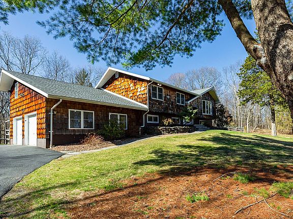 Well maintained and oversized 3 bedroom with den raised ranch on over 2 acres at the end of a cul de sac in Arlington School District. The open concept living area leads into the bright and airy great room with vaulted ceilings and tons of natural light overlooking the private and wooded backyard. The main living level features a den / office perfect to 'work from home,' a large full bathroom with double vanity, two large bedrooms including the master suite with double walk-in closets and an area ready for a huge master bath. Freshly painted and refinished hardwood floors throughout. The lower level has a laundry room with mudroom, a one bedroom accessory apartment with full kitchen and full bath, heated two car + garage with workshop. Close to Taconic, Route 55 and perfect for commuters. Nothing to do but move in a start enjoying all the privacy this home has to offer!