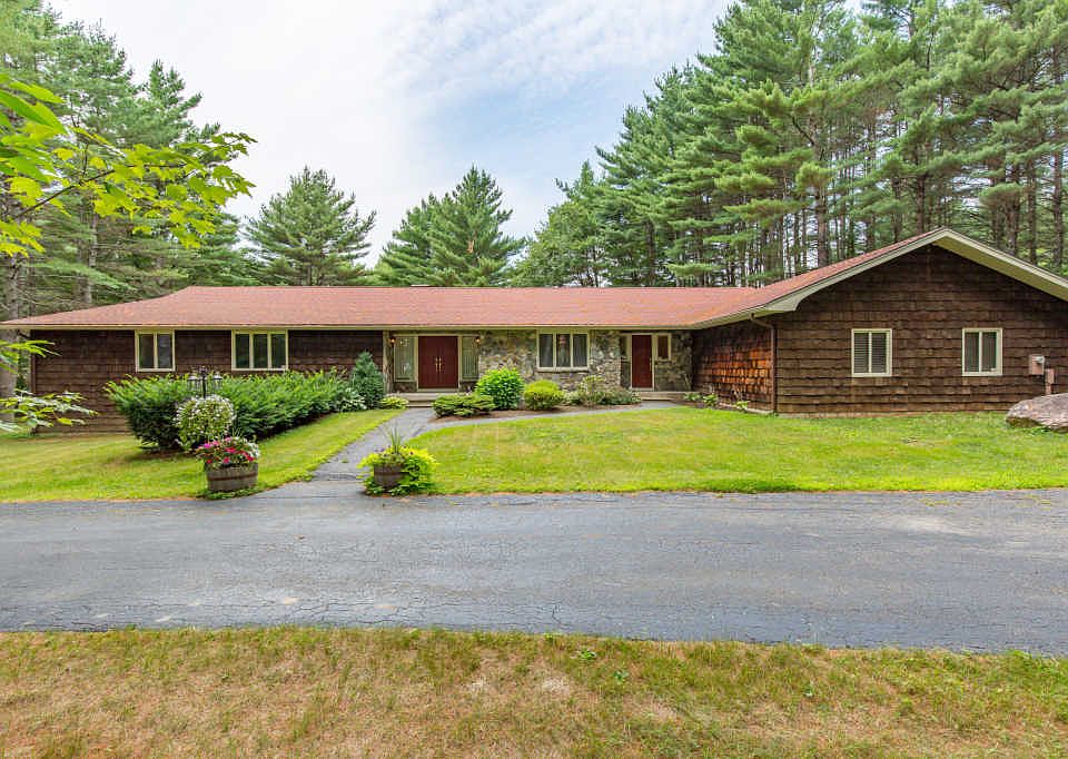 Spacious ranch set on private 1.6 acre lot just minutes from the turnpike. THIS HOME HAS IT ALL.. 4 bedrooms, 2 full baths, 2 half baths, solarium w/ hot tub, 2 stone fireplaces, vaulted ceilings, 1st floor master suite, formal dining, large eat-in kitchen w/ granite counters & 6 burner Viking cooktop, laundry room, home office, finished basement w/ bar & room for a home gym, as well as a 3 1/2 car garage. With over 3300 sqft of living space, a 500 sqft solarium & an additional 1300 sqft of finished space in the basement.. there is plenty of room to spread out. Less than 25 minutes to Portland this home is a must-see!