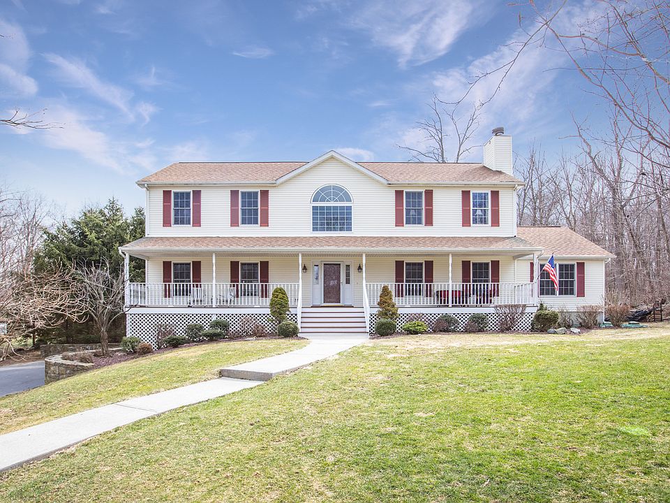 Finally-the home you've been waiting for! This spacious front porch colonial in the Lakeland school district on the Yorktown/Putnam Valley border, is prominently set on its level usable lot, just minutes from everything. This stately home features large formal living and dining rooms with gleaming hardwood floors and an attractive eat-in kitchen with granite countertops and stainless steel appliances, flowing into the family room with a cozy wood burning fireplace. The first floor rec room has a closet and is perfect for workouts, a home office or guest bedroom. The second floor features a master suite with a large walk-in closet and a full bath with a separate tub and shower, three additional bedrooms and a hall bath. The unfinished basement provides ample storage and additional possibilities. Outside, one deck overlooks a sprawling rear yard, and extends around the above ground pool. End your day relaxing on the roomy front porch with your favorite beverage, enjoying your new home.