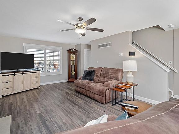 Affordable 2-story home in Lake St. Louis!! You'll love the location near Hwy 70 and Hwy 64, less than 5 minutes to either highway! Located on a cul-de-sac lot. Beautiful wood laminate floors throughout the main floor. The spacious living room has lots of windows with plantation shutters making it light & bright. The huge kitchen has a nice center island, 1/2 bath, and plenty of room left over for a large dining room table. Upstairs there is a primary suite with a full bath and a walk-in closet. The secondary bedrooms are also nice size, and there's even a 2nd-floor laundry room! A full bath completes the 2nd floor. The basement is finished with a rec room & wet bar area, and storage! Outside you'll find a large private patio with a firepit.