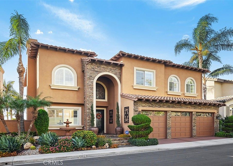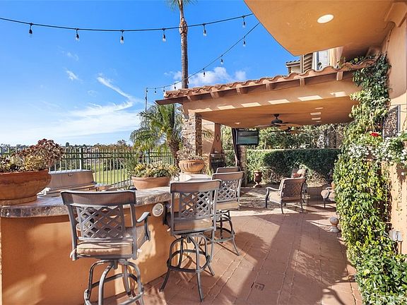 Welcome to 33 Golf Ridge, an exquisite residence in the highly sought-after Dove Canyon community. This stunning 5-bedroom, 3.5-bathroom, plus loft home offers an open and airy floorplan, designed for both everyday living and entertaining. Breathtaking panoramic views of the championship Jack Nicklaus signature golf course and surrounding mountains create a serene backdrop, visible from nearly every room in the home. Step inside to discover a seamless flow between the spacious living areas, including a full bar with wine fridge upon entry. The gourmet kitchen, a chef's dream, boasts high-end Dacor and GE Monogram appliances, including a built-in steamer and food scale double oven. The home's interior features custom wrought iron accents and five fireplaces. The fifth bedroom currently acts as an office with a closet and a fireplace. Upstairs, the primary suite offers a private retreat with breathtaking views of the golf course, a luxurious en-suite bathroom, and a spacious closet. The loft provides additional flexible space, perfect for a media room or office. The main living spaces transition effortlessly to a private backyard oasis, complete with a TV, bar top, BBQ, and serene landscape, offering the perfect setting for entertaining. Additionally, the home is equipped with smart home technology, including Nest thermostats, a water softener system, and a security system with front and rear cameras. Nestled in the prestigious Dove Canyon community, this home provides access to the finest amenities, association pool & spa, lighted tennis and pickleball courts, scenic parks, and walking trails. This is more than just a home, it's a lifestyle. Whether you're an avid golfer, tennis enthusiast, or simply someone who appreciates the best of Orange County living, this property offers it all. Show and Sell! Don't miss your chance to own a piece of this exclusive community with its unrivaled views and luxury living.