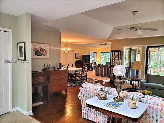 One level living! Fabulous location so near Sea Pines Country Club and the main gate! New carpeting, new gutters ordered (coming in May), new side deck, new chimney cap, well maintained! Spacious kitchen, wonderful private office off kitchen, large windowed breakfast area, living room with fireplace, generous family room addition for wonderful entertaining. Newer Plantation shutters (without that stick in the middle!). Wonderful master bath with separate jetted tub and shower. Beautiful and generous lot (.3698 acre), solid concrete driveway with interspersed pavers. Mid May closing preferred.