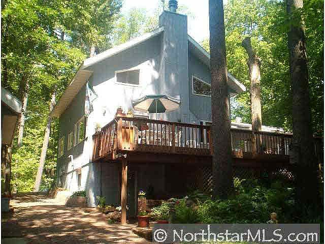 THE PERFECT LAKEHOME - Chalet style with 3 bedrooms walkout basement and one bedroom guest quarters off garage. Large deck, stone fireplace, central air. Perennial gardens & brick walkways toward the lake, even a waterfall.
