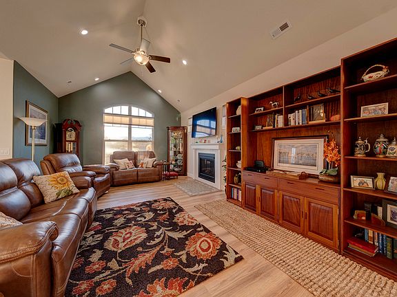 Beautiful ranch-style home nestled in The Powder Horn neighborhood with golf course views of the Stag 4 hole from the front of the home. Offering 3 bedrooms and 2 baths with an open concept living, dining and kitchen featuring vaulted ceilings. The kitchen has granite counters, large dining bar, prep island, and a built-in office area overlooking the backyard. Gorgeous western mountain views are framed perfectly through a large window in the great room. A primary suite is complete with double vanities, large walk-in steam shower, and spacious closet. Built in 2021 by the owner, this home is in immaculate condition and features luxury vinyl plank flooring throughout the entire home, extra closets for storage, and a 2-car garage. See documents and Supplement for additional information. Exterior features include a large back patio area overlooking the lawn with eastern exposure creating a perfect spot for entertaining, a covered front patio taking in the golf and mountain views, and upgraded landscaping with rock islands. Blending modern conveniences and luxurious features, this gem is not to miss! Some furniture and furnishing are available to purchase.