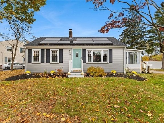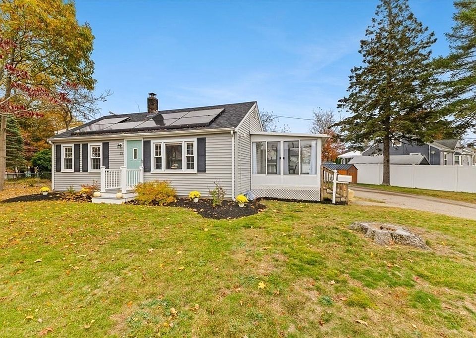 Step into this thoughtfully updated, move-in-ready home where a sunny living rm w/ HW floors, recessed LED lighting & a large picture window flows into an updated kitchen w/ granite counters, SS appliances & breakfast bar. Both BRs feature HW floors & new ceiling fans, and the bath offers ceramic tile & a tiled tub/shower w/ glass shelving. A heated sunrm provides flexible space for dining, play or office. The unfinished basement is an open area for storage or future expansion, w/ painted floors/walls, added insulation & a sump pump w/ battery backup. Extras include solar panels, vinyl siding, central A/C, town water/sewer, new water heater & new front porch, plus fenced yard, double-wide driveway & storage shed. Ideal for 1st-time buyers, downsizers or anyone seeking efficient, low-maintenance living w/ predictable utility costs & nothing left to do but move in & enjoy. Convenient to major routes, shopping & everyday amenities.