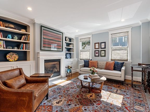 This highly finished 3BR/2BA, 2000+sf home is the perfect combination of old-world charm and a spectacular renovation, offering the best of both worlds. The stunning double parlor room features exquisite built-ins and two fireplaces. Gleaming hardwood floors flow to the open kitchen and dining area, featuring radiant heat for those cold winter days. The highlight of the dining area is the handsome custom built-in with mahogany top, offering storage, shelving and serving space. The dining area flows into a show stopping chef’s kitchen with custom cabinetry, quartz countertops, and bar seating. Appliances include a 6-burner Wolf range w/hood, paneled Bosch refrigerator and dishwasher, and JennAir microwave. The kitchen flows out to an expansive garden patio – perfect for entertaining. The second level includes a front facing BR w/walk in closet and a rear facing BR with FP and deck. A well-appointed full BA w/tub completes this level. The upper floor offers an oversized bedroom. C/Air.