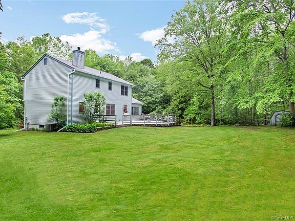 Call Pat Blanko 203-206-9194! Picture Perfect Setting with 4 car garage! Lovely Colonial style home beautifully set on picturesque, private, level 2.03 acres! Entry foyer opens to the formal living room with hardwood floors and French doors to the formal dining room. Step down to the front to back family room with vaulted ceiling, wood burning brick fireplace and opens to the eat-in kitchen. From the kitchen, you can access the two tier deck with pretty landscaped steps to the detached 2 car garage! Main floor laundry. Second floor includes Master bedroom with full bath and TWO walk in closets; and two additional generous sized bedrooms. Freshly painted interior. Invisible fence. Nicely landscaped in a neighborhood of connecting streets! Great for walking, bike riding! Easy access to 18 hole golf course Oxford Greens! Call Pat Blanko 203-206-9194!