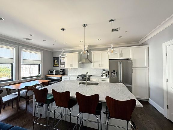 Welcome to 33 Griffith St #2, a stunning and spacious 3-bedroom, 3-bathroom condo in the heart of Jersey City Heights, around the corner from Riverview-Fisk Park. This home seamlessly blends modern design with functional living, offering an ideal urban sanctuary with abundant storage space. The open layout features hardwood floors and plenty of natural light streaming in through updated Marvin windows. The gourmet kitchen is a chef's dream, featuring a large center island and a suite of professional stainless steel Frigidaire appliances, a vented hood, and a generous pantry. The primary bedroom boasts two large built-out closets and an elegant ensuite bathroom. The primary bath includes a double vanity and a sleek, glass-enclosed shower. The second bedroom also provides the convenience of an ensuite bathroom with a glass-enclosed shower. The third bedroom and detached third full bathroom are located conveniently off the main living area. Internet, gas, and water are all included for extra convenience. Garage parking for up to 3 cars & storage also available in the building for an additional fee. Located in the vibrant Jersey City Heights, this residence offers easy access to a thriving local scene, with a mix of charming cafes, boutique shops, farmer's markets, and Riverview-Fisk Park with beautiful views of Manhattan right around the corner. Commuting is a breeze with multiple options, including a bus stop at the corner for a quick ride to PATH stations and direct routes to Manhattan, and two light rail stops a short distance away. Experience the perfect blend of luxury, comfort, and a coveted neighborhood lifestyle at 33 Griffith St #2.