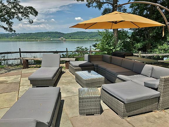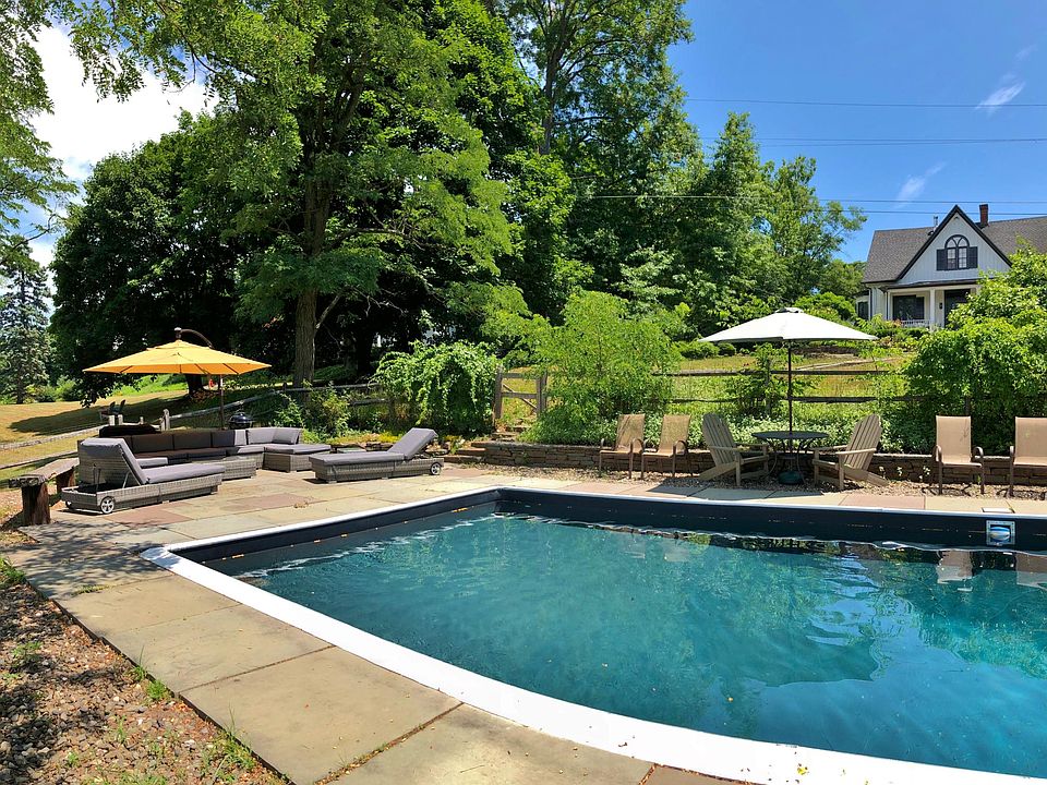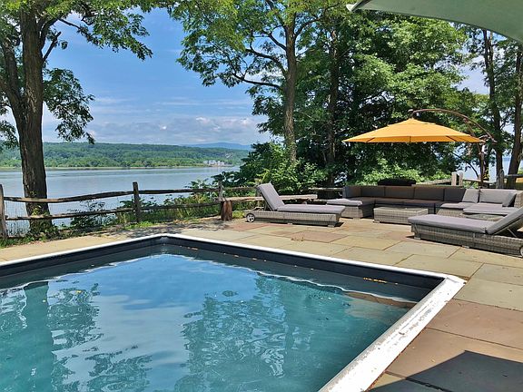 August rental: $17,000/month Contact if interested in weekly rental. This impeccably done vintage home has incredible Hudson River views, private pool and large yard. The house features 3 bedrooms on the second floor plus one on the main floor with pull out couch, all have private bathrooms. Enjoy the beautiful vintage charm with modern upgrades including a custom chefs kitchen, beautiful dining room, living room, and TV room. You'll experience incredible sunsets from the charming front porch or the pool which is perfectly sighted overlooking the river. Located walking distance to Amtrak and 5 minutes to Rhinebeck Village. AUGUST