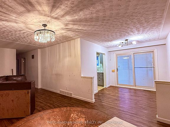 Laminate flooringRenovated kitchenStainless steel appliancesAmple counter spaceStylish backsplashOpen-concept dining areaSliding doors