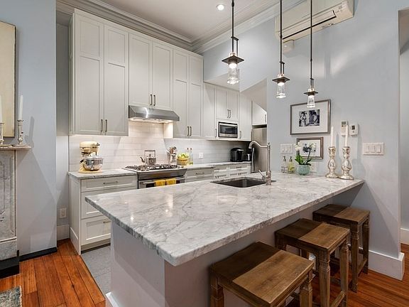 Live on tree-lined historic Hancock Street where gas lit street lamps create an amazing ambience right out your front door. Completely renovated in 2016 this 2 bedroom, 2 bath parlor duplex has modern amenities that blend with the old world charm. First floor entry opens into a spacious living/dining area with a full kitchen with breakfast island, marble countertops, custom cabinets and stainless appliances. A gas fireplace adds a nice touch during the cold months. Lower level features the primary suite with walk-in closet, double sinks and a waterfall shower. Second bedroom has abundant closet space, and a full bathroom. Both baths have heated floors. Private patio offers much coveted outdoor space, ready for a gas fire pit or grill. Modern features include, but not limited to, cherry hardwood floors, three zone heating and AC, intercom and in-unit laundry. Prime Beacon Hill location with a just quick walk to the Esplanade, Charles Street, MGH, Back Bay & the North End.