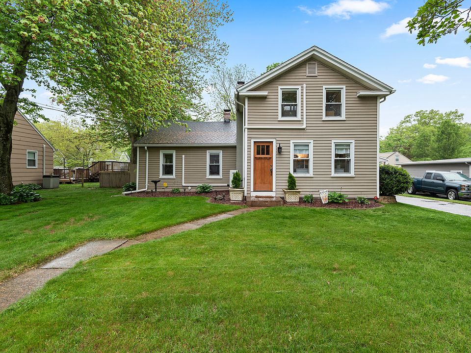 Professional pictures coming Saturday 5/10. Current photo is from 2023. Welcome to this charming Colonial nestled in the heart of Wallingford. This beautifully maintained home features three spacious bedrooms and one and a half bathrooms, offering the perfect blend of comfort and functionality. The main level is designed for easy living and entertaining. The open-concept kitchen flows seamlessly into the dining room, creating an inviting space for gatherings. Just off the kitchen/dining area is a generous living room that can accommodate plenty of guests-ideal for hosting family and friends. You'll also find a large laundry room and a convenient half bath on this level. Upstairs, the home offers three well-sized bedrooms and a full bathroom, recently updated with a stylish new vanity. Significant upgrades include a new mini-split system providing efficient heating and cooling year-round. Thanks to Wallingford Electric, monthly utility costs are incredibly affordable, ranging from just $85 to $300. Outside, enjoy .26 acres of flat, beautifully maintained land. The sellers recently installed new chimney flashing and a stunning Trex deck that surrounds the above-ground pool-perfect for summer relaxation and entertaining. This home has been lovingly cared for and is ready for its next chapter.