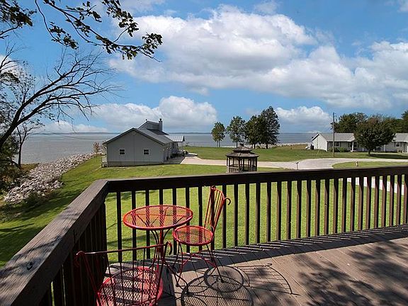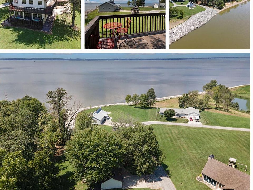 Looking for a Lake front home? If so, this is it! This 5 bed, 4 bath, home located on the eastern shore of Carlyle Lake is less than 300 feet (see attached aerial) from the sandy shore line! The main floor features a spacious kitchen/dining area with S.S. appliances, large family room with access to a screened in porch offering great views of the lake. Don't want to be inside? No worries, you can can access the maint. free vinyl wrap around deck directly off screened porch, which offers unobstructed views! For those times when you want to relax and take in the views, there's a spacious Family Room directly down the hall from the kitchen offering beautiful views as well. The upper level includes 4 bedrooms with walk-in closets, two baths and a wrap around porch where you can watch the wildlife or take in the panaromic views of the Carlyle Lake. Home furnished with exception of the following: Master bed/frame, table/chairs in L.L. D/R table/chairs on the main level. Additional Rooms: Sun Room