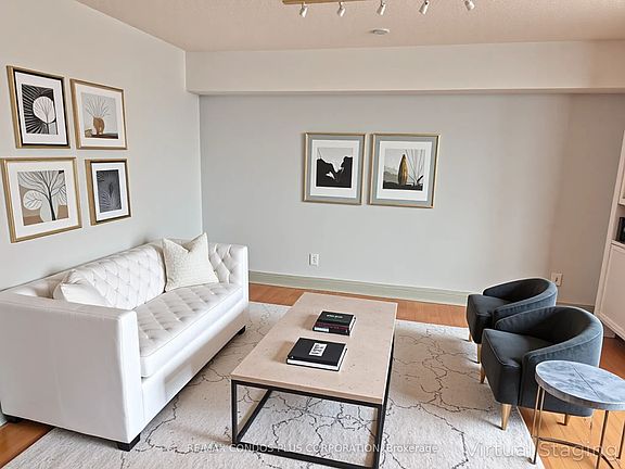Waterfront Living! Freshly Painted Suite. Wood Floors on Main Level, New Carpeting in Bedroom and on Stairs. New Blinds on Windows. This 2 level suite, over 1000 sq ft One (1) Bedroom with all utilities included - including Cable and Internet! Incredible building amenities include 24 hour concierge, 60 ft rooftop pool, huge garden terrace with BBQ's, fully equipped gym, sauna, squash court, private shuttle bus, visitors parking and guest suites at affordable prices. Superlative view of Lake Ontario and Toronto Islands. As per building bylaw this is a No Pets allowed building. Note - virtual staging is used in some photos