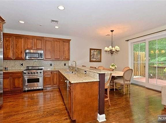 Welcome home to this luxury townhouse. This townhouse outshines residential homes in a similar price range. The kitchen features Viking oven, Sub-zero refrigerator, Miele dishwasher, granite countertops and backsplash, breakfast room, and butler's pantry w wine rack. The spacious eating area adjoins a fam room w/ sliding glass doors to a huge deck. The elegant liv room boasts a gas fireplace and spacious dining room. The gracious master bedroom and sitting area has high ceilings, jacuzzi tub w/ rain shower and dual walk in closets. The many amenities include access for elevator, skylights, 2 car att garage, central vac, and hardwood floors throughout. The ground level can be used as a bedroom suite or fam room/entertainment room and includes a wet bar w/ built-in cabinetry, and full bath with marble floors leading to an additional patio area. Located 12 miles to Manhattan in the excellent community of Harrington Park.