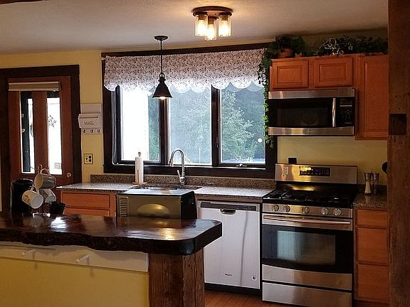 This charming 1870’s farmhouse is situated on .43 acres in the heart of Franconia, NH. This 3 bedroom, 2 bathroom comes with an office and two story barn. All bedrooms have large walk-in closets: storage will not be an issue in this home! Hardwood floors throughout the home provide a cozy atmosphere, while updated appliances in the kitchen and pantry make the space both functional and modern. With plenty of space for outdoor seating, the wraparound porch provides outdoor space to take in the wonderful yard and gardens. This move-in ready house would be perfect for a family home or a vacation getaway as it is within walking distance of the shops in town, and within close reach of the many surrounding hiking trails, ski mountains, and other outdoor adventures. 33 Harvard Street is also within a 15-minute drive of business hubs like Littleton and Lincoln. Whether you want to visit the Lupine Festival in the spring, enjoy the local music of Old Home Days in the summer, go leaf-peeping through the Notch in the autumn, or ski all day long in the winter: this home puts you in the heart of scenic New Hampshire. This house is being sold as is and no further repairs will be completed prior to closing. Open houses will be on the following days: Sunday, 8/28 from 1-4pm. Offers will only be reviewed if there is an attached mortgage pre-approval letter or proof of funds.