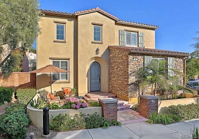 Boasting stunning curb appeal with rustic natural flagstone and intimate courtyard, this homes premium corner location and desirable privacy make a striking impression. Guests will be captivated by the inviting outdoor living spaces, and exquisite interior architecture offers a dramatic open layout with bright and sunny orientation. Large chef-inspired kitchen features upgraded cabinetry, extensive granite counter space, walk-in pantry and spacious island overlooking casual dining area. Generous family room with custom built-ins and cozy fireplace is framed by walls of windows and lush garden views of the wrap-around yard, ideal for outdoor living and entertaining. Relax and recharge in your luxurious master suite and spacious spa-like bath with ample closet space for him and her. Desirable main floor bedroom is currently modeled as a den, while generous-sized secondary bedrooms and convenient tech center enrich your life and your homes value, and offer comfortable living space for the entire family. Within the highly acclaimed Irvine School District and a short walk from the neighborhood park and clubhouse with resort-style pool and spa, this model-like home is a rare opportunity at this price.