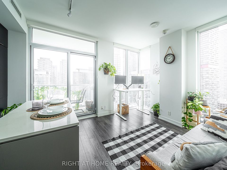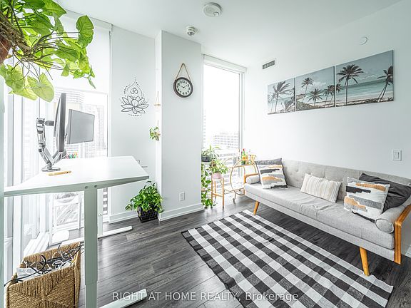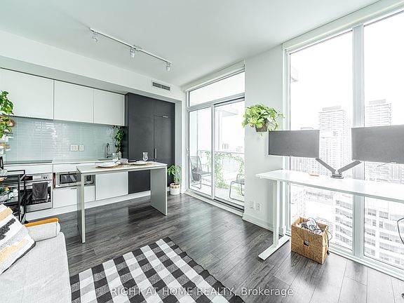 Check out the interactive virtual tour! This bright 1 bedroom corner suite on the 18th floor offers a modern living experience with a functional layout, private balcony, laminate flooring throughout, built in kitchen appliances and an ensuite washer and dryer. The 488 sq ft suite features an efficient open layout with clean, contemporary finishes. Can also be rented furnished with existing furniture for $150 per month and a locker is available for $50 per month. Whitehaus Condominiums is ideally located in the Yonge and Eglinton neighbourhood, steps to shopping, dining, transit and everyday conveniences. Residents enjoy a strong selection of amenities including fitness facilities, an events room, ping pong area, artists studio and a large common terrace.The area offers excellent walkability. The Yonge Eglinton Centre is close by with Metro, LCBO and Rexall, along with many restaurants, cafes, bakeries and boutiques. Eglinton Park provides sports fields, tennis courts, winter skating rinks and a well maintained community garden.Transit access is outstanding with Eglinton Station offering subway service and multiple bus routes. Drivers benefit from quick routes across midtown and easy access to Highway 401 via Avenue Road.A clean, modern suite in one of midtowns most connected and vibrant neighbourhoods.