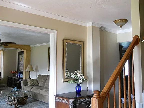 Unique, secluded country home situated on 32+ acres with beautiful hardwoods and spectacular views. If you value privacy, this is the place! Long, winding drive takes you to the home atop a hill, with miles of mountain views to the west. Maintained meadows and pastures lend a country estate feel, and some fencing is in place for horses or other animals. Over a mile of maintained trails meander through the wooded areas, to arrive at a very beautiful ridge top. The trees! The views! The recreation!