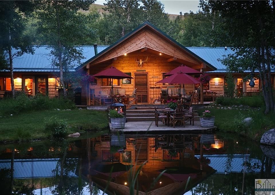 Secluded sanctuary hidden within walking distance to downtown Red Lodge. 13+ magnificent acres sculpted into 5 ponds , 4 waterfalls, streams, bridges & a helipad. A storybook charm radiates from each of the 3 log cabins, garage w/living quarters & art studio. Lavishly appointed & decorated inside & out w/custom high end furnishings, canoes & a paddle boat - Turn key. Juniper bar top w/inlaid turquoise & cabinets adorned w/zebra wood imported from Africa are example of details. Additional building sites on property. No sign. SF, baths and beds are for all 3 cabins combined. Add living quarters in garage and art studio are not included in SF. Seller requests buyer see video prior to viewing in person. Two other building sites on property. Includes an additional 1 acre parcle just outside of gate.