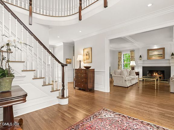 Custom built for the current owner and lovingly lived in since new, this beautiful and unique home sits commandingly on Hill Road just off of Stanwich waiting for its next owner. In addition to five bedrooms, each with an en-suite bath, a quite dramatic entry with beautiful living and dining rooms traditionally off the foyer, this home offers perhaps the sunniest and best situated south facing family room/kitchen I have seen, and a truly elegant library/home office with adjacent half bath. Add to this the finished lower level with rooms for a multiplicity of uses, a three car, heated garage, and a seemingly unlimited and gorgeous level back yard flanked by bluestone patios and you will have a nearly perfect place to dwell.
