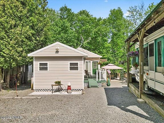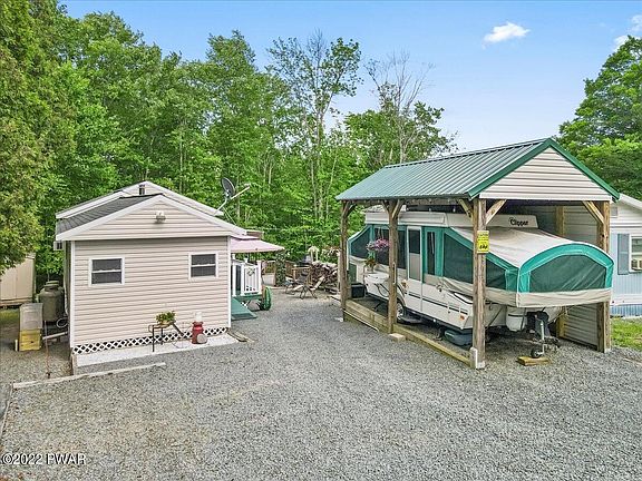 DEEDED DOCK SLIP ON THE WALLENPAUPACK RIVER INCLUDED! MATICULOUS POP UP CAMPER WITH TITLE INCLUDED! Check out this 2 bedroom home that has everything to offer. With seasonal views of the river and just a short walk to all of your lake activities. This home comes with a 10,000 BTU air conditioner and multiple sources of heat to include oil forced air, propane fireplace and 2 propane wall units. The entire underside of this home was just completely insulated as a year round home. Not only offering one deck space but TWO, one with a gazebo and built in fireplace. There's also a HUGE spot for your boat in the back! Completely turn key! Come check it out before it is gone!