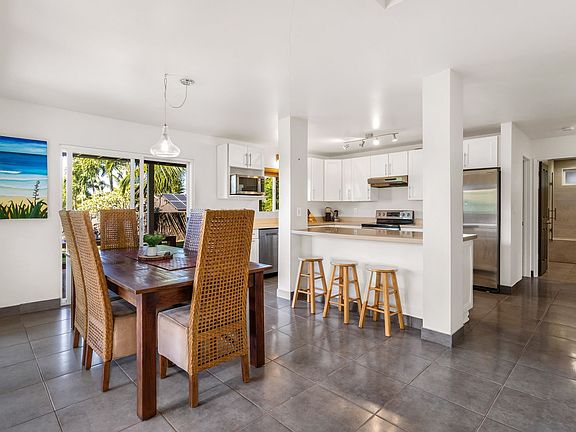 This two-story home in Kuau Bayview Estates is an incredible find. Beautifully furnished 4 bedroom, 3 bathroom, approximately 1,685 sq. ft. with an open concept floor plan, tile floors throughout the first level. The kitchen is equipped with stainless steel appliances, and fully stocked for the chef of the family with a kitchen island and bar stools, bonus large walk-in pantry in the kitchen. Tropical views from the kitchen, dining area with table and chairs, living area with oversized comfortable sofa and flat-screen T.V. Ceiling fans and window coverings throughout the lower level. Step out to the spacious covered lanai from the sliding glass door off the dining area, which is perfect for grilling, and a large beautiful wood picnic table to gather around while enjoying the tropical private backyard and taking in the ocean views. One of the two primary bedrooms is also on the lower level with a Queen bed, ensuite full bathroom with a luxurious soaking tub, and shower. Washer and dryer area on the lower level with garage steps to side door to an outdoor shower to rinse off from the beach. The upper level has beautiful wood floors throughout with three bedrooms, closets, and ceiling fans. All of the upper three bedrooms enjoy ocean views and sliding glass doors to go out to the large covered balcony! Two of the bedrooms have two Twin Bed in one room and the other has one Twin Bed with a desk that can be used as an office. Bathroom with shower off the hallway of the two bedrooms. The second primary bedroom upstairs has a walk-in closet, AC unit, ceiling fan, window coverings, and gorgeous north shore ocean views! The primary bedroom ensuite bathroom includes a spacious luxurious walk-in shower and a double vanity sink. You will enjoy lounging on the balcony of the primary bedroom suite that boasts extensive ocean views and the tropical backyard area. Bring nothing but your suitcase! With a short distance to all the popular North Shore beaches, this property is perfect for anyone who wants to be in the ocean every day. This Paia property exemplifies North Shore living at its finest. Just steps away from North Shore's most coveted restaurants, shopping, and pristine beaches. Kuau Bayview is a quiet neighborhood in Paia and you can walk to the beaches, restaurants, shops, and amenities of Paia town. Close proximity to historic Paia town with a variety of restaurants and shopping. A short stroll to Mama's Beach or Mama's Fish House. Quick access to Baldwin Beach and Hookipa Beach, famous windsurfing and surfing beaches. Fully Furnished, Covered Balcony, Dishwasher, Microwave, Laundry Room with Washer/Dryer, Surfboard Rack, Outdoor Shower, Garage, Ocean views Available Starting December 16, 2024 Rent $5800 plus GE Tax $273.30 = 6,073.30 Rental Term for 6 to 9 months until September 30, 2025 Utilities included in the rent: internet/cable, water, sewer, trash, and landscaping Tenant responsible for Electric No Pets and No Smoking