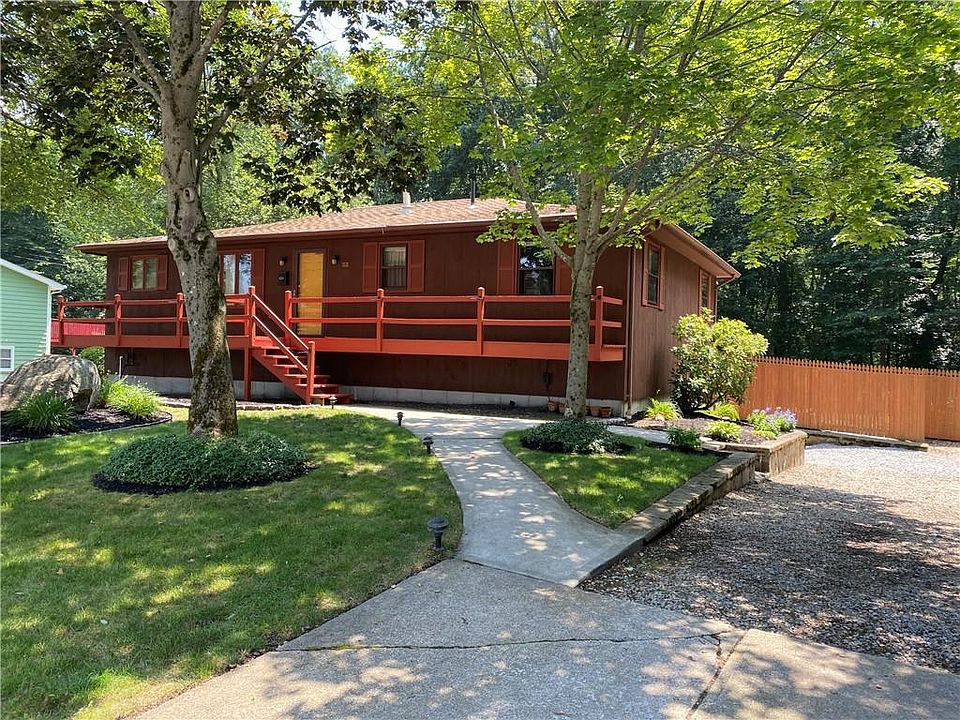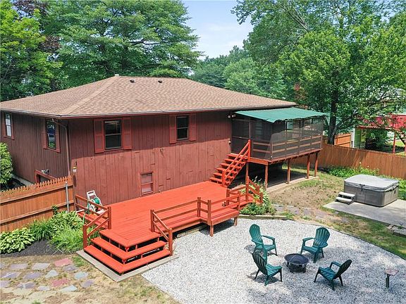 Welcome to 33 Hollow Circle! This spacious ranch offers the simplicity of one level living and beautiful private back yard oasis. Interior is warm and inviting offering spacious granite kitchen with white birch cabinetry, generous living room with double sliders and screened porch, primary bedroom with private bath, two additional bedrooms and full bath. Lower level boasts family room with pool table, laundry room and an additional room perfect for home office or gym. Integral one car garage and over-sized shed compliment this property with plenty of utility space and storage. Hot tub, front and back decks and wonderful fenced yard make this home perfect for entertaining! Nestled on a quite cul-de-sac close to local shopping centers, dining, and local airport. A must see...make this your home sweet home!