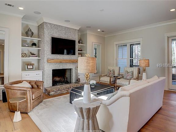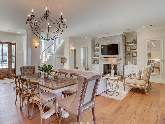 Tranquil marsh views from this Lowcountry dream home! This 5 bedroom Berkeley Hall home situated on an oversized lot has 4 bedrooms in the main house & separate carriage house apartment over the garage. The open concept plan includes a gourmet chef's kitchen & family room with fireplace, a keeping room, large screened porch with additional fireplace, separate study, upstairs loft area perfect for a media or computer space between the 2 bedroom suites. White oak floors, designer details & impeccable quality throughout this professionally decorated home. The expansive yard includes firepit for entertaining & enjoying the view. Room for a Pool!