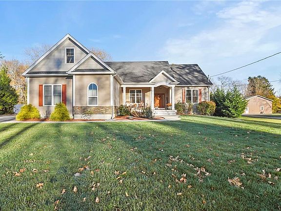 Step into this beautifully designed ranch-style home, built in 2019, offering the perfect blend of modern convenience and timeless appeal. With three bedrooms and two full baths, this home is thoughtfully crafted for both comfort and style. The main living area boasts stunning hardwood flooring and vaulted ceiling. Open concept kitchen features stainless steel appliances, quartz countertops, spacious center island and adjoining dining area perfect for entertaining. The family room features a gas fireplace -surrounded by custom built ins. A dedicated laundry/mudroom adds everyday convenience, while the retreat-like primary suite features hardwood flooring and ensuite bath with double vanity, custom tiled shower and walk-in closet. Spacious unfinished basement provides the perfect opportunity to expand your living area. Two car garage and low-maintenance exterior that includes stone accents, vinyl siding and composite decking.