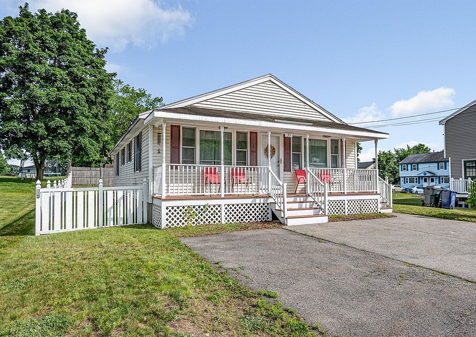 Single level living at it's finest! This home has a beautiful farmers porch to sit out and enjoy your morning coffee. Then enter into the open kitchen, dining area and living room with cathedral ceiling making this space light and open. This home has lots of natural light that shines in through the picture windows in the living room and dining area. There is a full bath with laundry hook-ups making your laundry chores a breeze. There are three bedrooms total with the primary bedroom having an ensuite bath. You have 2 additional bedrooms with one having a slider to a rear deck to sit and unwind. The lower level of this home is partially finished boasting a large family room and an additional room that could be used as an office or whatever would suit your needs. There is off street parking in the paved driveway and a fenced in back yard. Owner currently has the 3rd bedroom set up as a living room/TV room.