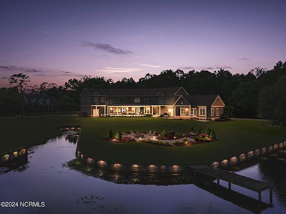 Experience breathtaking sunrises and enchanting views from every level of this luxurious lakefront estate nestled on the banks of Holt Lake. Meticulously crafted for seamless lakefront living and elegant entertaining, this home boasts mesmerizing scenes that seamlessly merge indoor and outdoor spaces. Upon entry, you'll be greeted by stunning lake views, soaring ceilings, and an inviting ambiance that beckons you to indulge in the serenity of lakeside living. Impeccable features such as hardwood floors, custom built-ins, and a chef's kitchen elevate the aesthetic appeal. The living room, adorned with wall-to-wall French doors, opens to a private study with a captivating double-sided saltwater aquarium, while the downstairs guest suite offers a luxurious tiled bath. Upstairs, the private owner's suite boasts a spa-like bath and a private balcony overlooking the tranquil lake. Additional features include three secondary bedrooms, a bonus area, and another balcony with panoramic views. Outside, a covered back porch, patio with firepit, and serene cove views provide the perfect backdrop for relaxation. Plus, a guest house with a full kitchen and panoramic views awaits your visitors. Situated on a stunning corner lot with five garage bays, canal access, and a host of amenities, this lakefront retreat offers the epitome of luxury living.