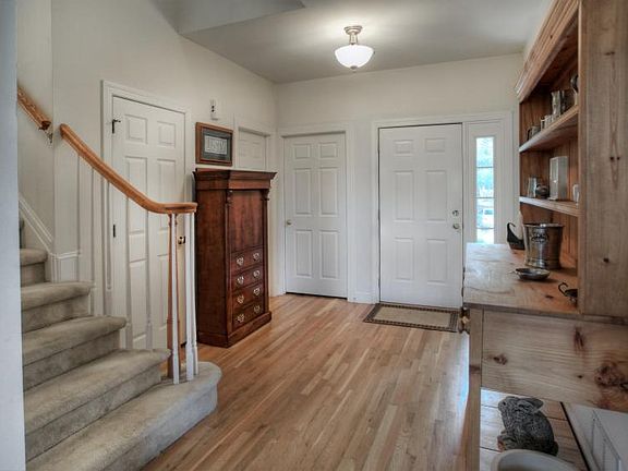 Original owners paid premium price for this location. Backs on to 10 acres of meadow/woodlands with 2 houses, one on each of the 5 acre parcels. No further building. Privacy for your deck and patio.