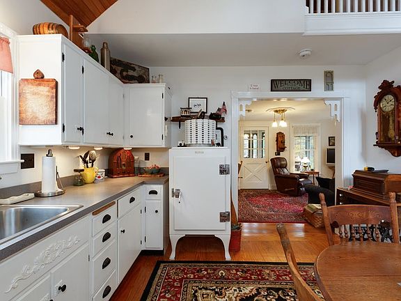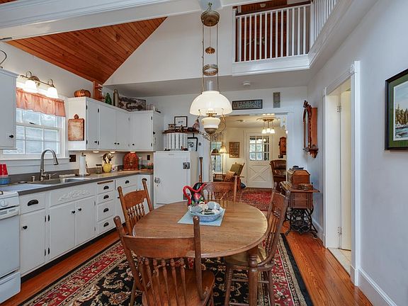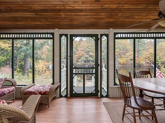 Private waterfront Cottage, "TA-KIT-E-Z" nestled at the end of dead end, abutting conservation land with 52' frontage on the Contoocook River and private dock. Upon arrival you will be greeted by the beautiful wisteria, the peacefulness of nesting birds, and natural landscape of the river. Once inside, you will be taken with the quality craftsmanship and charming ambiance of the home, with it's blended mixture of classic yesteryear and modern amenities. The kitchen is worthy of being featured in Architectural Digest, with it's Vintage 1930's refrigerator, cast iron gas stove, wood floors and cathedral ceilings. Open living room featuring custom woodwork, a gas stove with brick hearth and mantel, access to the relaxing porch with it's tranquil Waterview's, and a turned staircase with handcrafted built in's that leads to the second level where you will enjoy a very spacious bedroom accented by it's wood floors, cathedral- tongue and groove pine ceilings, balconied alcove and "Juliette" balcony. Natural gas. Plenty of outdoor living space to enjoy, from gardening, evening campfires or enjoying a candlelight dinner by the river. Swimming, boating, fishing and exploring the walking trails! This gem is truly unique and has been treasured by one family for over 35 yrs. Don't wait- start creating your memories today!