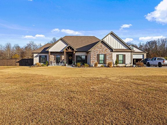 Welcome to your dream home nestled on a spacious 1.62-acre lot, where luxury meets functionality in this meticulously crafted 4-bdrm, 2-bthrm. The expansive living rm has a vaulted tongue & groove wood ceiling & accented by a striking wood beam, this space exudes warmth & character. A stone fireplace w/ wood mantel serves as the focal point, providing both ambiance & comfort on chilly evenings. The kitchen has a vent hood, stainless steel appliances, & granite countertops, w/ ample cabinetry & a generous pantry provides abundant storage space. The large island offers a perfect spot for casual dining or meal prep. The open floor plan provides a seamless flow & creates an effortless environment for entertaining w/ adjacent dining rm. Upgraded LVP throughout! Large Master bdrm has tray ceiling with ensuite bathroom, complete with a large walk-in shower and a luxurious soaker tub. Large mstr closet has ample storage w/ built-ins for organization. Enjoy the separate laundry room w/ sink & storage. Take in the tranquility of nature on the covered back porch! 30 X 20 shop with electrical, 30 x 14 loft, & a 1/2 bath.