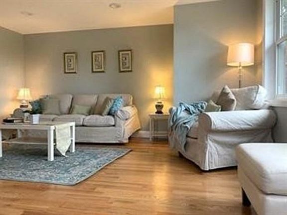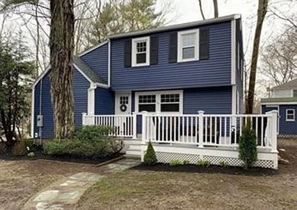 Commuter's Dream! Fresh & lovely 3 BR 2 BA colonial in move-in condition, tucked away on dead-end in tranquil neighborhood, but 2 minutes to Xway, shopping & restaurants! Tastefully updated in a light and bright color palette. Open floor plan with gracious LR and den/office nook, flowing into sun-dappled kitchen w brand new custom cabinetry, lavish granite counters/peninsula, subway tile, recessed LED lights & new stainless appliances. Renovated full bath on 1st floor. Another room that could be a DR, den or possible 1st floor BR. Mostly brand-new hardwood flooring throughout. Upstairs, 3 bright and immaculate bedrooms, and renovated full bath w laundry. Brand new Heating System, Central Air & HW heater. All new energy efficient windows & doors. Brand new siding with 35+ yr life. New maintenance-free front deck/railings.Updated plumbing, electrical & insulation. Newer roof. Brand new septic system. Top schools. Stroll to Jacobs Pond for walking trail, kayaking & fishing