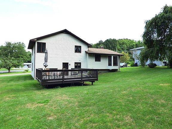 Rare opportunity to own an oversized 3 bedroom, 2 bath split level with all the right features in a beautiful setting and wooded back yard. Enter to find a spacious bright living rm with gleaming hardwood floors, huge bow window, and fireplace. Living room opens to a dining room with a big bow window looking onto the plush green back yard and woods. The kitchen is spacious and open with stainless steel refrigerator and lots of cabinet and counter space. Up a few stairs in this split level are three good size bedrooms all with hardwood floors and big closets along with a large bathroom with tub/shower, linen closet, and double bowl sink. Lower level has a cozy family room and another full bathroom with standup shower. The garage is spacious and has a large window for natural light. The cellar is large and wide open with washer and dryer, gas furnace with air conditioning, and gas hot water heater. Electrical panel is brand new. Outside is a large, detached deck perfect for gatherings.