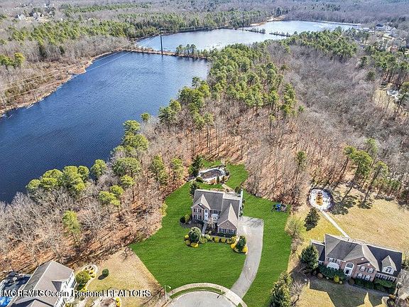Experience unparalleled luxury, elegance, and privacy in this exquisite full brick front Colonial, nestled at the end of a serene cul-de-sac on over 6 sprawling acres with breathtaking water views. With spotlights highlighting the beauty of this home, step inside to discover a brand new kitchen featuring sleek quartz countertops, dual sinks, brand new appliances, and a spacious walk-in butler's pantry. Perfect for both relaxation and entertaining, the oversized living and dining rooms lead into a two-story family room, complete with a cozy fireplace and large windows that flood the space with natural light.