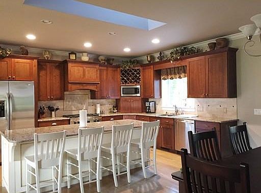 Does an absolutely STUNNING single level home on 6+ private of acres in Hatfield sound appealing to you? High level of finish thruout the home w/ all the extras. Beautiful chef's kitchen w/ fabulous oversized island (quartz counters). The kitchen, dining rm area, + living rm were thoughtfully planned w/ white oak flooring + have created distinct living areas within the open floor plan. Off this great room is a beautiful window enhanced sunroom to the rear of the home which brings the outdoors in + connects to the lovely rear patio, great fire pit + rear acreage. Master suite has a stunning tray ceiling w/ lighting + enjoys the master bath w/ a 5' shower + super enhanced soaking tub, plus an incredible walk-in closet . Laundry room is an amazing room all to itself. 2 nicely sized bedrooms on the other end of the home w/ their separate bath. There is also a cozy office. Vehicle accessible road leads to the Mill River (Mill River is back boundary).Additional 2-car garage (4 garage bays).