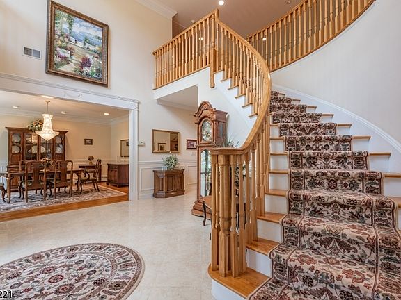 Stunning center hall colonial with Bridal staircase and motorized chandelier. This home features 5,000 sq. ft. including 5 bedrooms and 5 1/2 baths in a dynamic combination of soaring ceilings and traditional formal spaces. The gourmet kitchen is complete with center island, bright breakfast area, and back staircase to the 2nd floor. The adjacent great room is enormous with gas fireplace and wet bar along with the formal dining room and living room. First floor is complete with large bedroom ensuite and full, front to back office or den, with panoramic views of the neighborhood. Four more bedrooms upstairs with formal master bedroom and bath, 2 more bedrooms with main bath, and another large bedroom ensuite. Also included are 9 zone hot water heat, 4 zone A/C, central vac, whole house water filter, paver driveway, Koi Pond, 3 car attached garage, and fabulous landscaping.