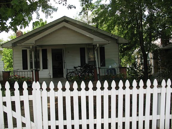 Main floor has 2 bedrooms, living/dining room, kitchen (includes stove & new refrigerator), full bath, beautiful old wood floors and tile in bathroom and kitchen. Downstairs has main room, full bath, and separate laundry room (includes washer & dryer). Downstairs has its own entrance and has been rented as a separate apartment. Large front porch, fenced yard. Quick walk to West Asheville restaurants, pubs, and businesses. Quiet residential neighborhood with sidewalks.