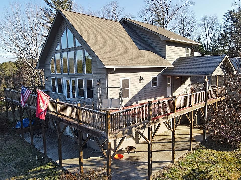 Enjoy the peace & quiet of mountain living at this, furnished and well maintained cabin set on 6 acres. Beautiful setting & views from the spacious decks looking out to the mountains & over the community lake. The view inside is just as good with a wall of windows providing plenty of natural light & beautiful new shiplap covering the high ceilings. Open floor plan & laundry/mud room on the main level. Luxury of having two master bedrooms, one on main & the other upstairs. Full finished, walk-out terrace level with third bedroom & bonus room. The pull through driveway has been updated with Tennessee Stone. Large insulated garage also has electricity. Many other features to see & too many to l