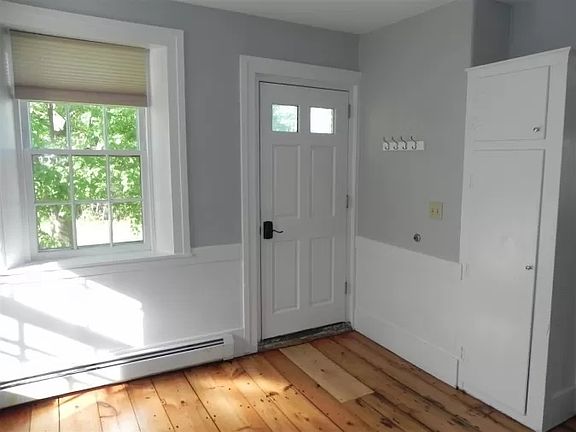 Apartment available for immediate move-in. 550 SF in classic 1830 Colonial with only 3 other apts, privately situated on 1.6 acres. Updates include granite counters, stainless appliances, antique wide pine floors and keyless entry. Private entrance. Off street parking. Master Bedroom, Full Bath, open floor plan with Kitchen/Dining/Living Room. A charming building with a large grassy yard perfect for barbecues. 1 mile to Amtrak, minutes to Rt 101. Coin-op W/D in bsmnt. Inquire about pets. Annual lease 1st month rent and one month deposit to secure lease. Credit and background check required.